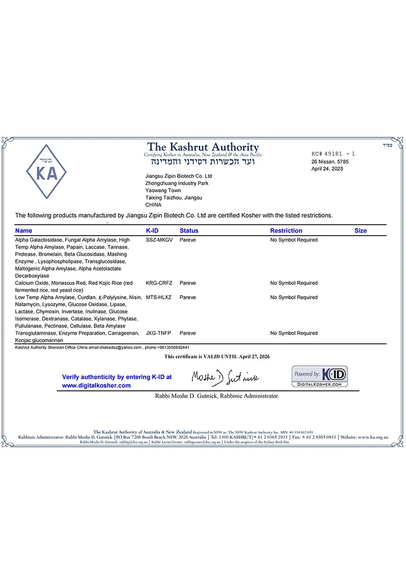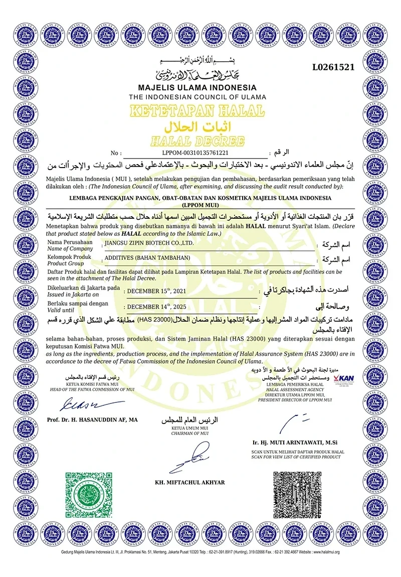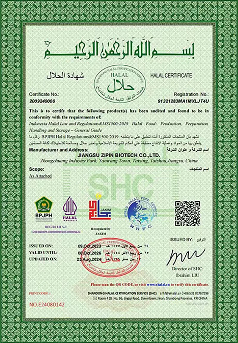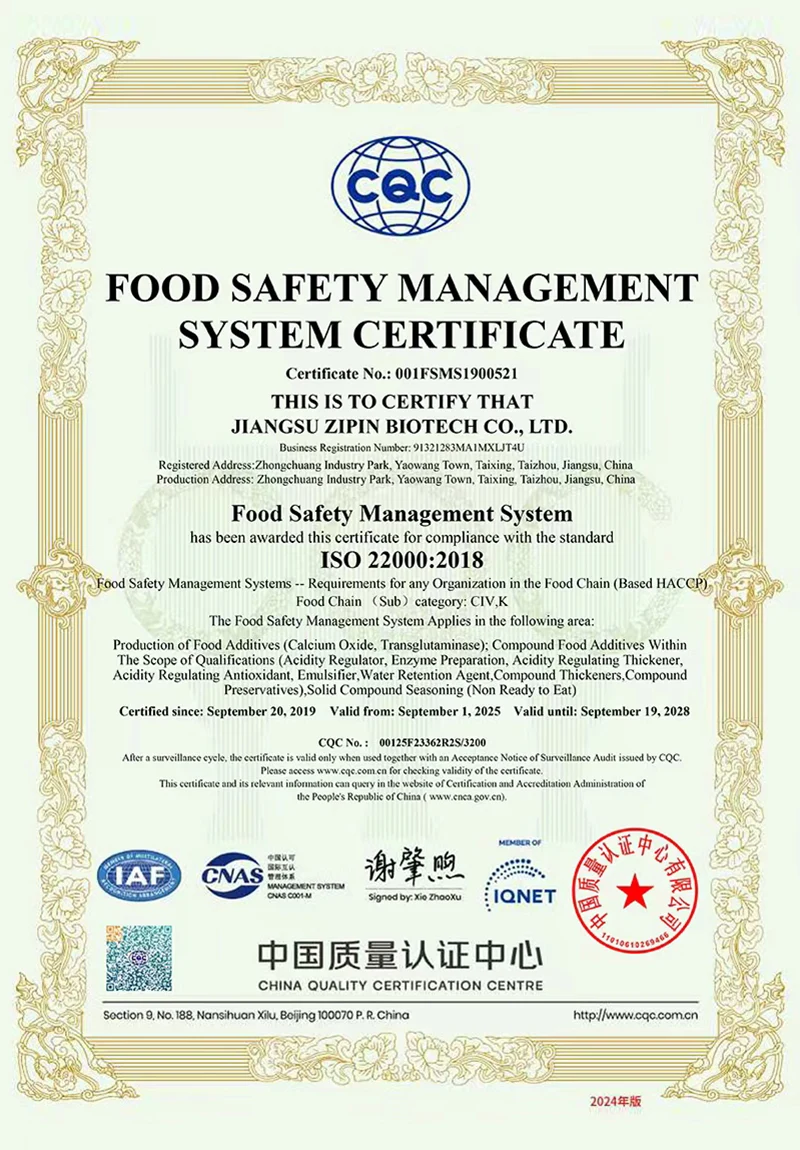 Jiangsu Zipin Biotech Co., Ltd. werd opgericht in 2016 en beslaat een oppervlakte van 20.000㎡. Als moderne particuliere onderneming houden we ons nu voornamelijk bezig met R&D, productie en verkoop van levensmiddelenadditieven. Onze belangrijkste producten zijnTransglutaminase, Curdlan, ε-polylysine, Nisine, Natamycine en andere levensmiddelenadditieven.